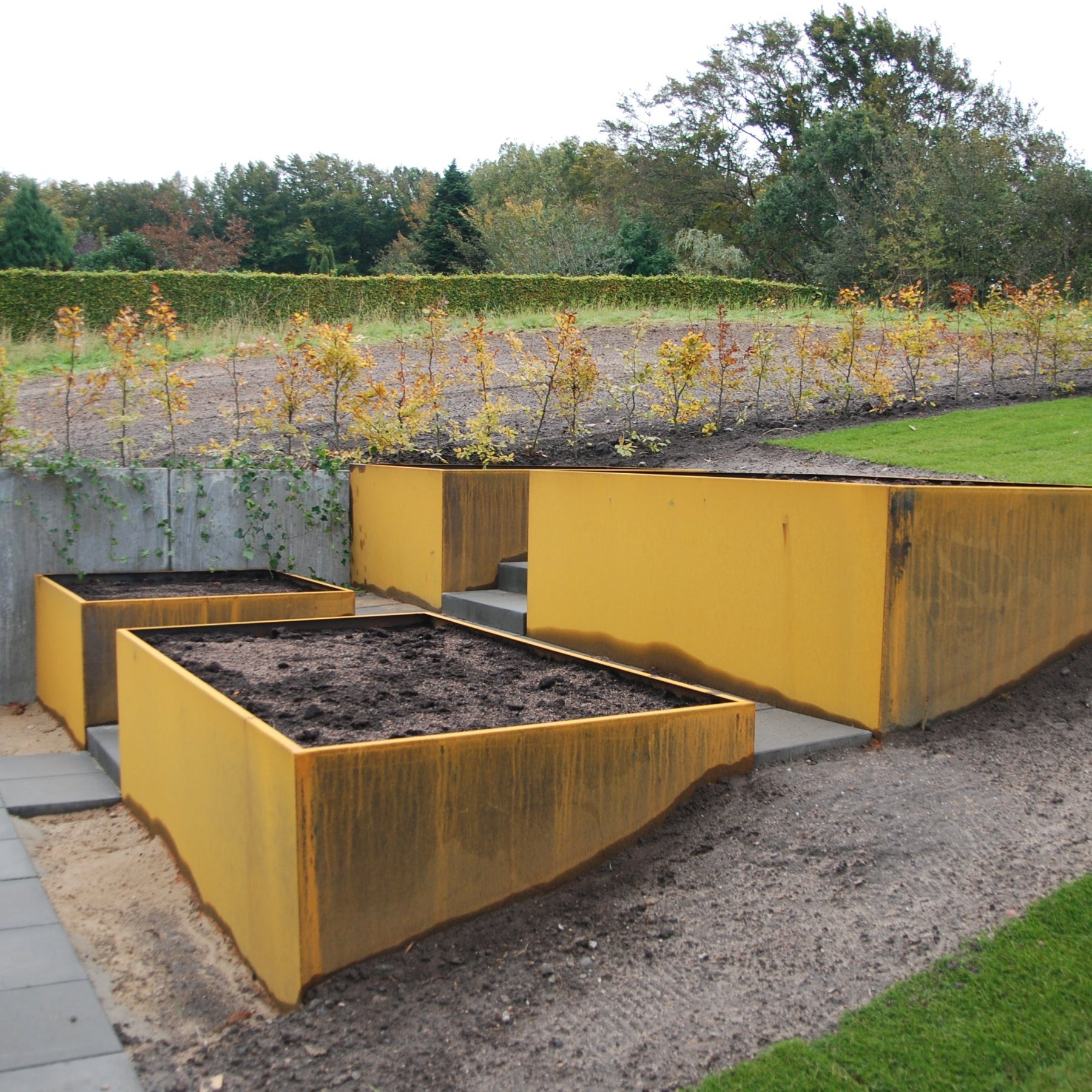 Når du mottar en plantekasse, har den ennå ikke fått patina (rust). Dette skjer etter kort tid utendørs, så det er ikke nødvendig å bruke kjemikalier eller annet for å oppnå den vakre røde fargen. Vi anbefaler faktisk at du ikke bruker kjemikalier (eddik, salt, syre eller annet), men i stedet lar plantekassen patinere (ruste) i vind og vær.