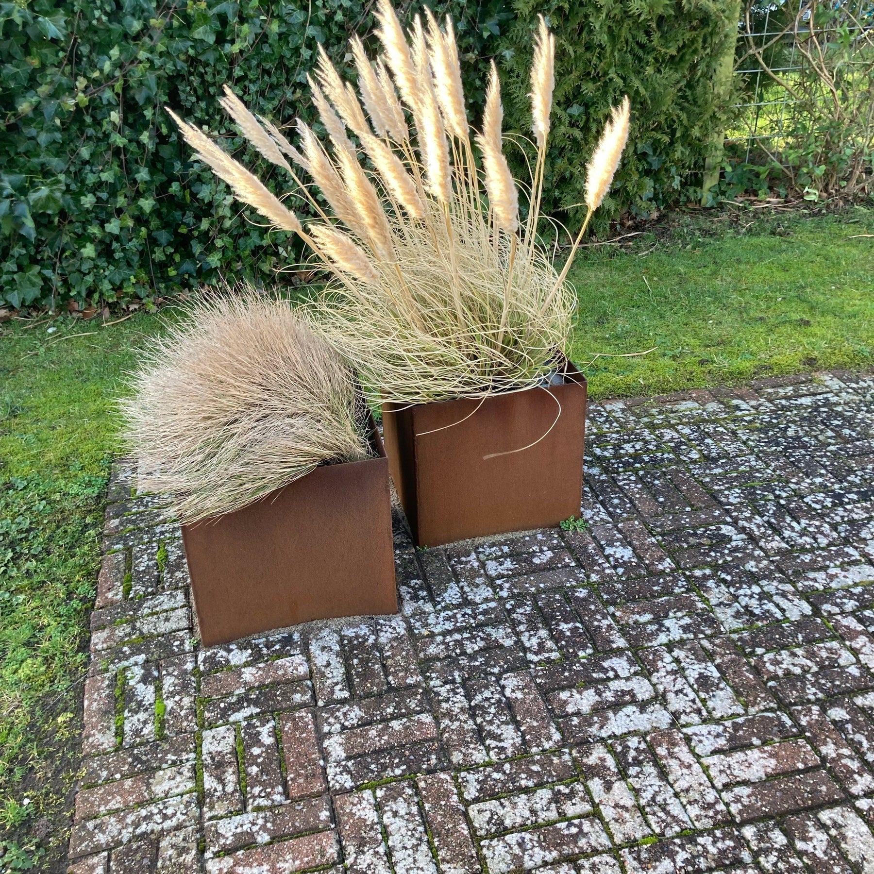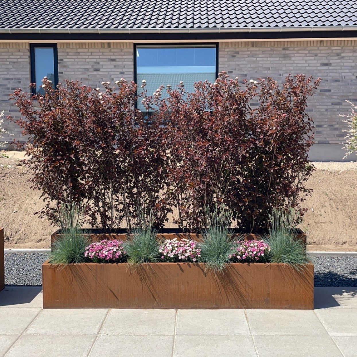 Når du mottar en plantekasse, har den ennå ikke fått patina (rust). Dette skjer etter kort tid utendørs, så det er ikke nødvendig å bruke kjemikalier eller annet for å oppnå den vakre røde fargen. Vi anbefaler faktisk at du ikke bruker kjemikalier (eddik, salt, syre eller annet), men i stedet lar plantekassen patinere (ruste) i vind og vær.
