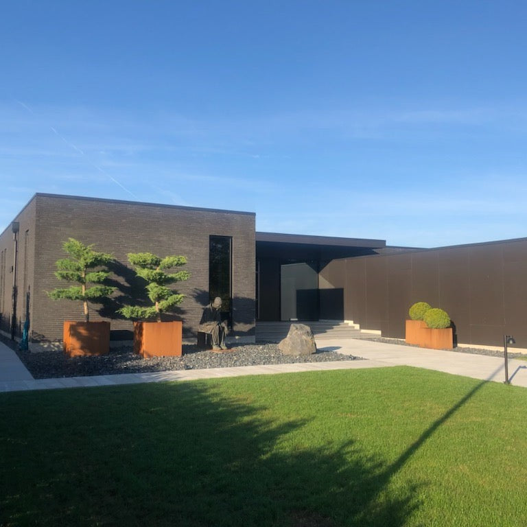 Firkantet plantekasse laget av cortenstål. Plantekassen er tilgjengelig i forskjellige bredder og høyder. Plantekassen er heltsveiset i hvert hjørne. Derfor trenger du ikke å bekymre deg for skjøter eller annet, bare tenk på hva du vil plante.